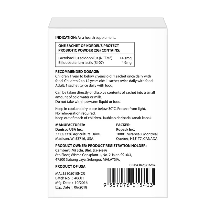 Kordel’s Protect Probiotic Powder contains a total of 10 billion CFU of the scientifically proven and patented HOWARU® premium probiotics, it is proven with solid clinical documentations and landmark study results.